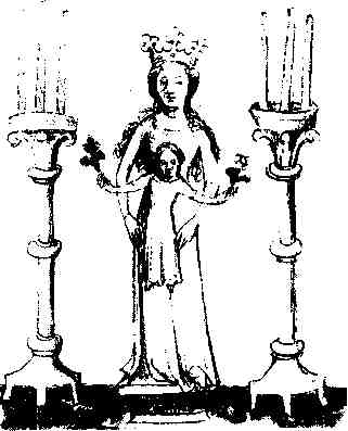 320 Однако, осталось спросить об одном: "Три есть три - но где же четвертый?" Почему пропущен синий? Этот цвет был также пропущен в "искаженной" мандале сновидца (см. пар.287). Довольно странно, что календарь, который пересекается золотым кругом, синий, и такой же цвет имеет вертикальный диск в трехмерной мандале. Мы можем сделать вывод, что синий, расположенный вертикально, означает высоту и глубину, (синее небо вверху и синее море внизу), и что любое сокращение вертикали превращает квадрат в прямоугольник, производя тем самым нечто вроде инфляции сознания.''17 Следовательно, вертикаль будет соответствовать бессознательному. Но бессознательное в мужчине имеет женские характеристики, а синий -традиционный цвет небесного плаща Девы (рис.105). Гийом был настолько поглощен Троицей и тройственным аспектом короля, что совершенно забыл о королеве. Фауст обращается к ней со словами; "Верховная Царица мира! Позволь мне рассмотреть твои секреты в распахнутой лазури полога небес".