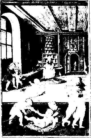 302 В этом сне элементы из сна 44 снова соединяются: дети и темная женщина, которая прежде была злой колдуньей. "Солнцестояние" означает поворотную точку. В алхимии работа завершается осенью (Vindemia Hermetis). Дети (рис. 95), боги-карлики, несут кольцо т.е. символ целостности, все еще под влиянием по детски чистых созидательных сил- Заметьте, что дети также играют роль в opus alchymicum: определенная стадия Делания называется Indus piierorum'*. Сохраняя для ремарки утверждение, что работа легка как "детская игра", я не нашел этому объяснения- Вывод, что работа, по единодушному утверждению всех адептов, чрезвычайно трудна, предполагает эвфемистическое и, возможно, также символическое определение. Оно должно таким образом указывать на взаимодействие части "инфантильных" или бессознательных сил, представленных в образах кабиров и домовых (гомункулов: см. рис.96).