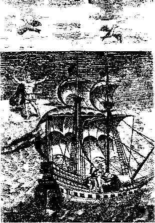 Рис 97. "Великое Путешествие" на корабле. Два орла летящих вокруг земли, в противоположных направлениях, указывают, что эта Одиссея осуществляется в поисках целостности. - Maier. Viatorium (1651)