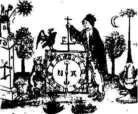 307 Вертикальный и горизонтальный круги, имеющие общий центр. Это часы мира. Их, держит черная птица.