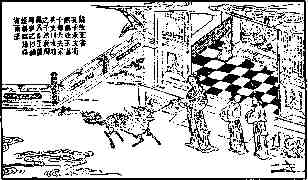 Рис.260. Ch'i-lin объявляет о смерти Конфуция. "На 14 году царствования герцога Ай [ из Лу 481 г. до н.э.] во время зимней охоты на запади был ранен ch'i-lin. Это событие серьезно потрясло Кун-цзы и он прекратил работать над Шу-дэин. Кун-цзун-цзы [Сборник историй о Конфуции] сообщает: "Когда клика Шу-сун [аристократическая семья в Лу] подпалила подлесок, она ранила ch'i-lin, но никто не признался в этом. Они выбросили его на распутье Ву-фу. [Ученик] Яан-ю сообщил это и сказал: "Тело оленя с рогом, это не тело ли божественного чудовища, что служит дурным предзнаменованием?"Кун-цзы пошел посмотреть на него. Он заплакал и сказал: